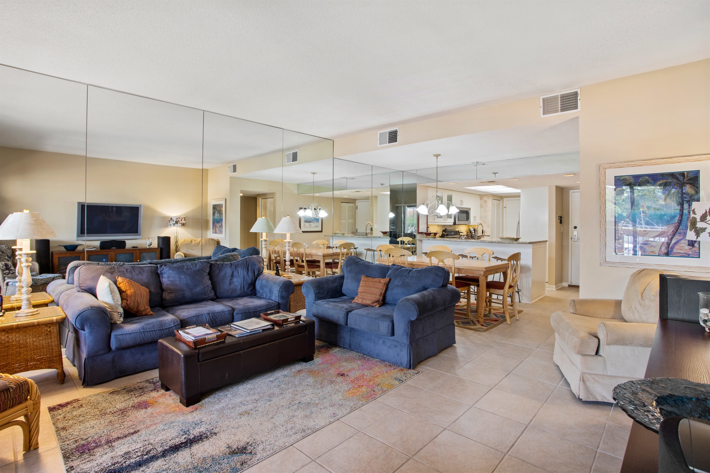 Completely Renovated: The bright and airy second-floor villa has floor-to-ceiling windows; a newly renovated kitchen with granite, tumbled stone and European stainless-steel appliances; tile floors throughout the common area; newly carpeted bedrooms, and updated bathrooms. The master bedroom with an extremely comfortable hybrid mattress king-sized bed overlooks the harbor, while the front bedroom, with two full-sized beds, overlooks the pool area. The den has a top of the line LG OLED flat-screen TV with an advanced home theater sound system that includes AppleTV player hookups, so you can listen to your own music on this awesome system. The dining room table seats six, while the breakfast bar accommodates another three for meals. An outdoor high-top table on the covered balcony is the best location for sunset gatherings or early-morning coffee. Overall, the upscale decor has a beach theme using sunset colors, wicker, glass and a mix of light woods against newly painted neutral walls. Calm and relaxing feel, through and through.